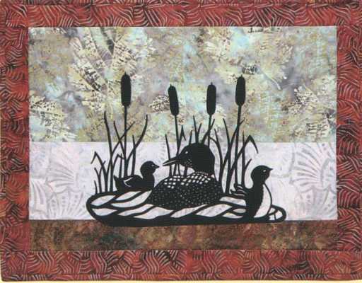 Kit. Quick fusible applique with laser cut loons silhouette included. Simple pieced background adds depth and interest to this easy wall quilt.