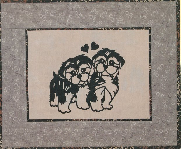 This quick and easy pattern includes the laser cut puppies and hearts. Add a border to create a fun wall quilt.