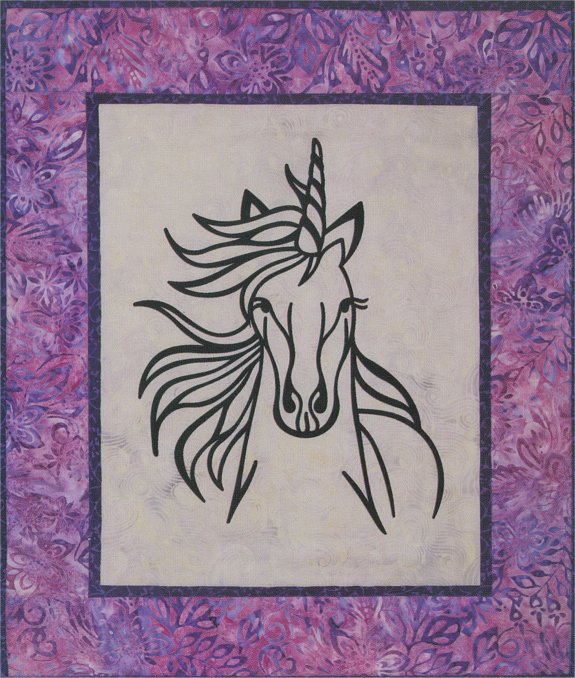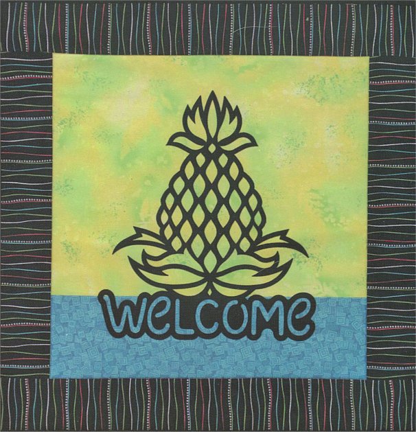 Quick and easy welcome banner to greet all who come to your home. Laser cut silhouette is included for fusing to a pieced background, or marbled hand dyed fabric. Give as a house warming gift.